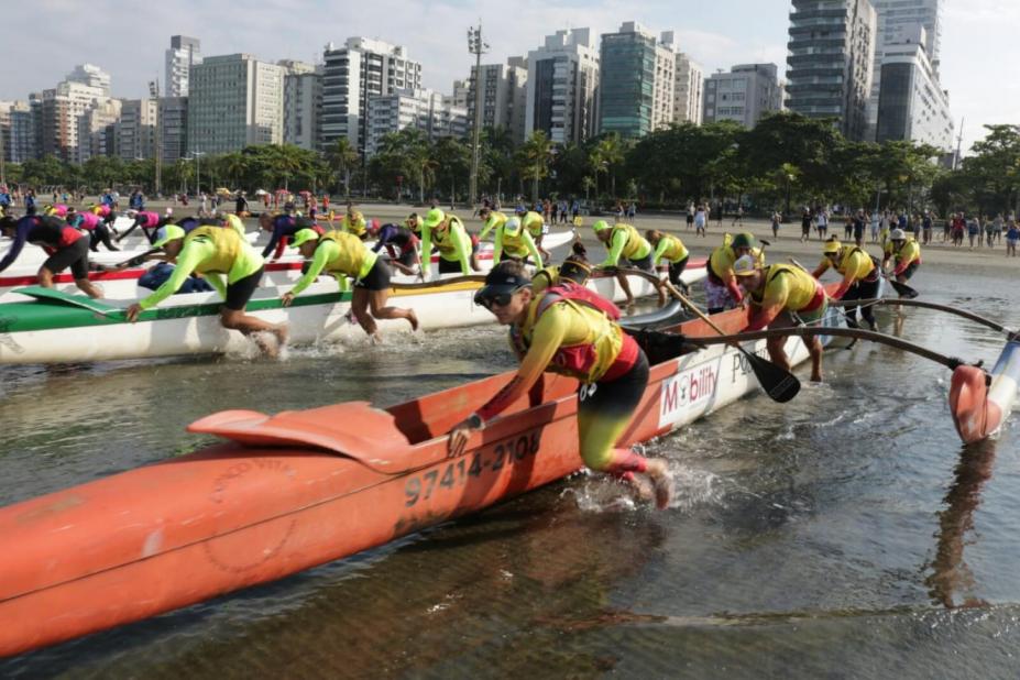 A largada acontece às 8h na Praia da Aparecida e a chegada no mesmo local, reunindo 26 equipes, cada uma com nove remadores, que se revezam na canoa. No total, o evento contará com mais de 400 pessoas, entre atletas, staffs das equipes e organização.
