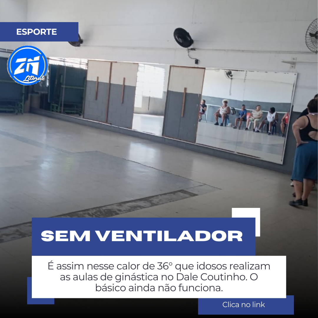 A sala de ginástica do Poli Esportivo Dale Coutinho, Jardim Castelo tem apenas três ventiladores funcionando, outros estão quebrados já muitos meses, sem manutenção, alunos sofrem num calor de 36°.