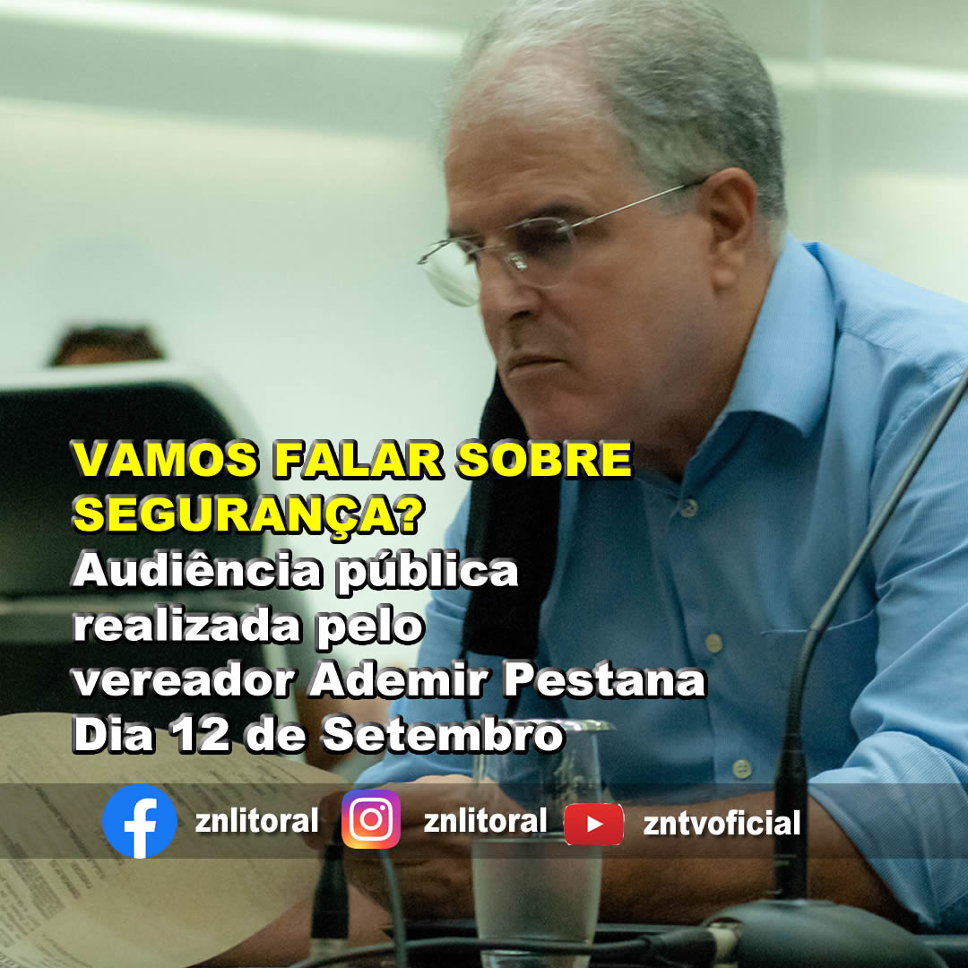 Preocupada com a onda de furtos e assaltos em vários bairros da cidade, a Câmara de Santos, por iniciativa do vereador Ademir Pestana (PSDB), promove no dia 12 de setembro, às 16h audiência pública. No mês de agosto, na Rua Minas Gerais, no Bairro do Boqueirão, por exemplo, ganhou destaque nas redes sociais uma mãe que levou uma coronhada na frente da filha de 8 anos após levarem seu veículo, a outra mãe que passeava com seu bebê foi surpreendida por um assaltante que roubou seu celular.