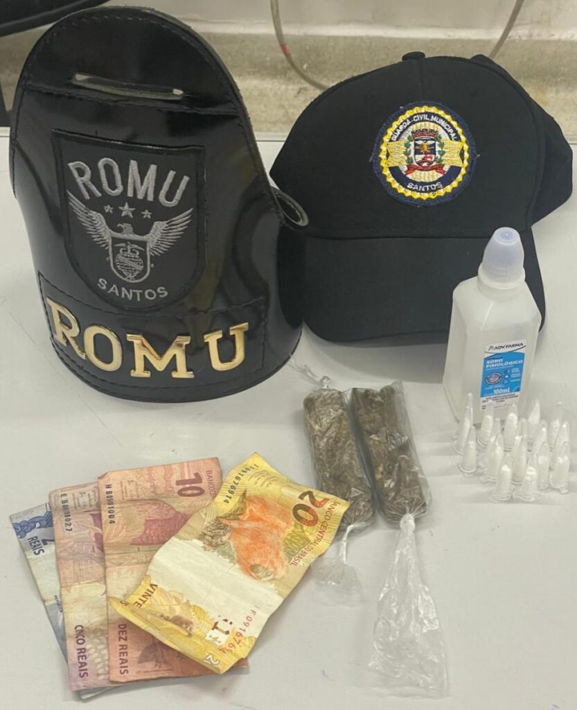 Com as características dos suspeitos, agentes da GCM se deslocaram ao local, onde foi localizado um dos indivíduos monitorados. Ele foi abordado e, com ele, foi apreendido um celular e a quantia de R$ 37 reais. Em seguida, os guardas municipais realizaram a varredura da área monitorada, onde foram encontrados 17 pinos de cocaína, dois tabletes de maconha e um frasco de lança perfume.