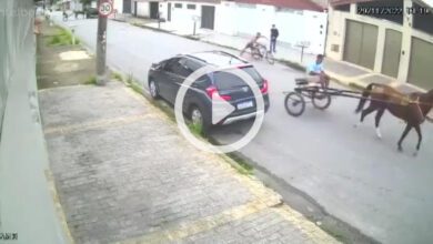Homem-Aranha’ vai a nocaute no 1º dia de trabalho e viraliza ao bater em poste e cair de ‘trem da alegria’ no litoral de SP; VÍDEO