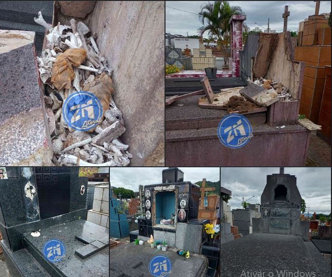 Cemitério da Areia Branca pede socorro! Aliás Deus nos ajude, pois a situação é dramática, não há uma campa que não foi violada, furtada, algumas destruídas, até ossos estão expostos. Bandidos furtam todas as noites sem nenhum problema. No cemitério tem câmeras de monitoramento, mas pouco efetivo da GM, novas câmeras virão e uma equipe apenas de atendimento ao cemitérios será montada.