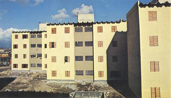 A carência de áreas livres no município de Santos-Ilha e o alto custo da terra surge como o maior impedimento a uma política mais agressiva no setor habitacional. Todavia o volumoso investimento em infra-estrutura na Zona Noroeste e a utilização de novas técnicas construtivas permitiram a realização de Conjunto Habitacional projetado e fiscalizado pela Prodesan, sob a responsabilidade da Cohab-Santista, em construção no Jardim Castelo.