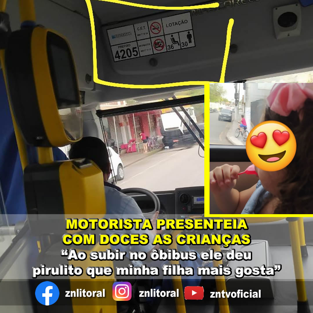 “Parabéns para este motorista que adoçou a vida da garotada nestas férias. Super simpático, usando uma máscara divertida, entregou pirulitos em formato de coração para cada criança que entrava no ônibus. Por sinal é o pirulito preferido da minha filha, que se sentiu radiante.