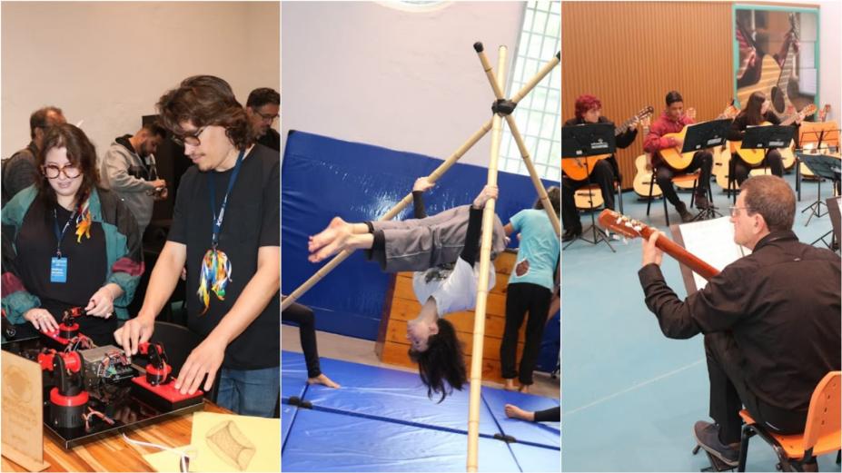 13h às 15h: violão, dança contemporânea, circo, robótica, street dance e maker