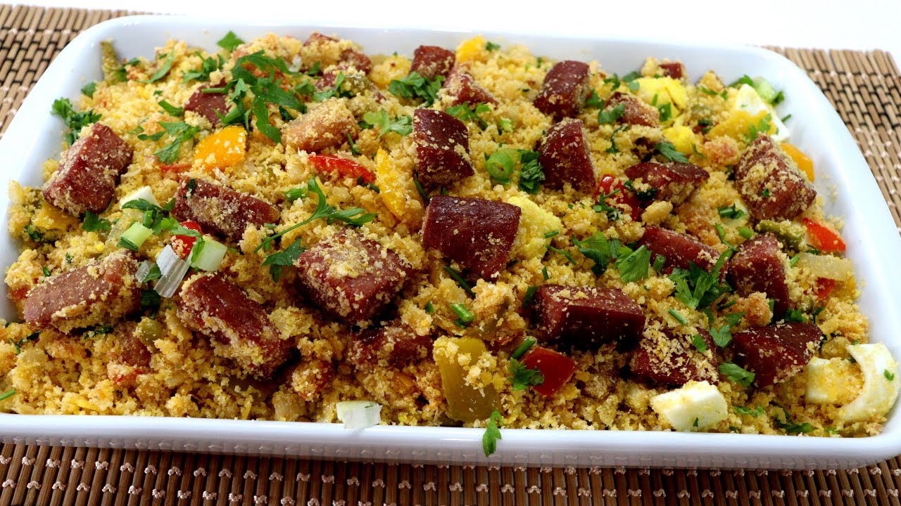- Farinha de milho na quantidade desejada para deixar a farofa mais úmida ou mais seca