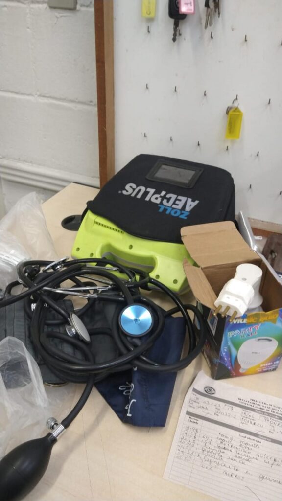 O homem foi localizado pelos agentes ainda no interior da policlínica carregando aparelhos médicos, lâmpada de LED e sacos de lixo, que seriam utilizados para embalar os produtos do furto. Em revista, os guardas encontraram ainda duas serras de aço.