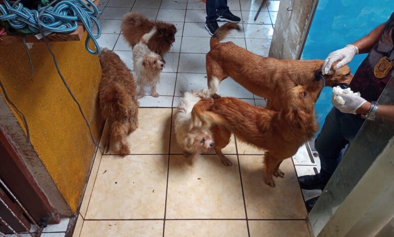 Os investigadores entraram na propriedade armados com um mandado de busca e apreensão e encontraram o cachorro em condições perigosas, segundo a polícia. No local, a polícia apreendeu medicamentos veterinários vencidos e equipamentos cirúrgicos enferrujados contaminados por fezes de ratos.