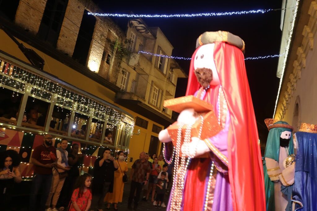 Iluminado e com animação de personagens, o Bonde de Natal parte da Estação do Valongo (Largo Marquês de Monte Alegre), das 18h às 21h, com ingresso gratuito. O ‘grand finale’ de cada trajeto é o emocionante Presépio Vivo, na lateral do Museu Pelé.