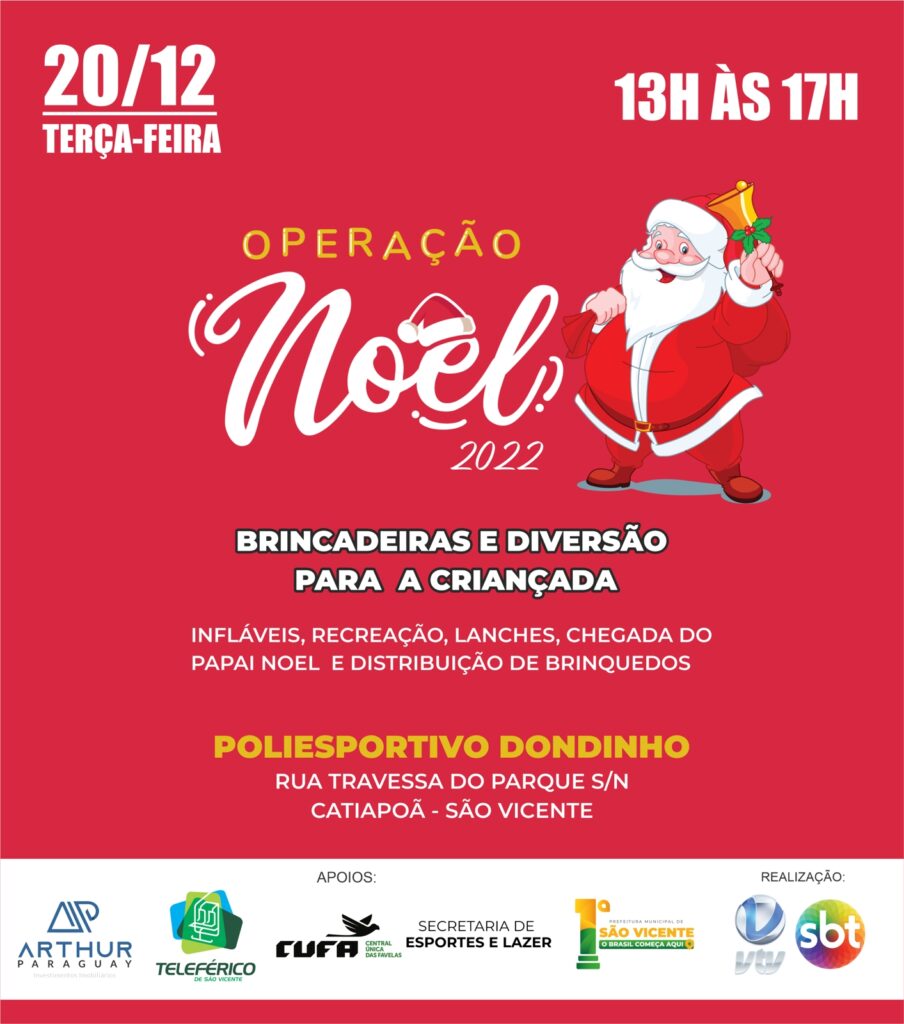 Entrando no clima de Natal, os alunos das escolas de esporte da Prefeitura de São Vicente participarão do evento “Operação Noel”, no ginásio Poliesportivo Dondinho, na próxima terça-feira (20).