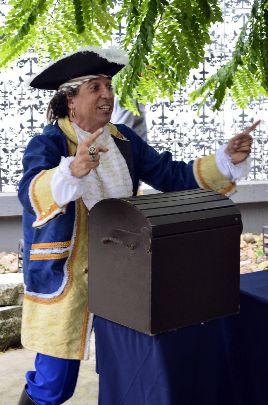 O personagem Pirata receberá o público que comparecer à visita interativa no Outeiro de Santa Catarina, marco inicial da povoação de Santos, no Centro Histórico, a partir desta sexta-feira (dia 2).