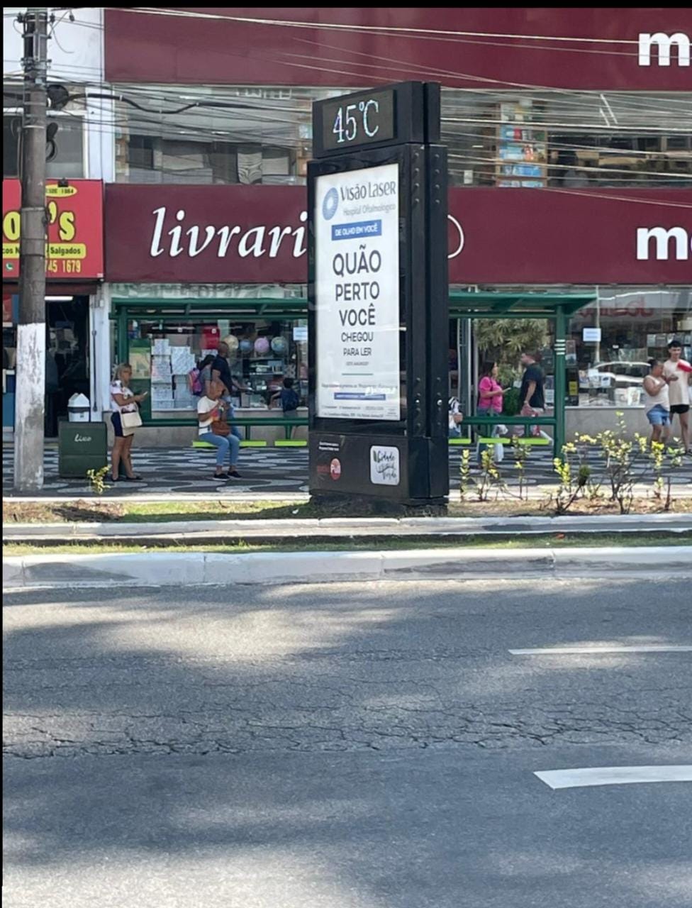 A imagem retirada das redes sociais no bairro do Gonzaga em Santos mostra uma temperatura um pouco acima, mas profissionais do tempo, já calcula passar dos 40º nessa quarta feira de agosto. O ultimo calor escaldante foi em 2001, atingindo extamente os 41º.