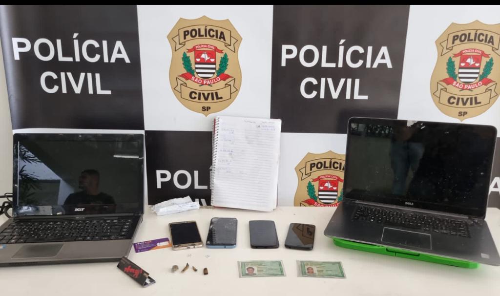 O homem foi preso em flagrante pelos crimes de estelionato, receptação e porte de drogas, pois também foi apreendida pequena porção de maconha que ele alegou ser para uso pessoal.