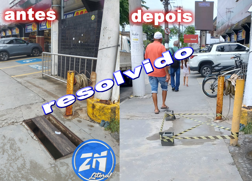 Av Nossa Senhora de Fátima, bairro Areia Branca, quase em frente ao Tenesse uma caixa de passagem estava aberta, foi postado na página da znlitoral, e nesse sábado (27) pelo serviço de urgência urbana da prefeitura regional, foi fechada.