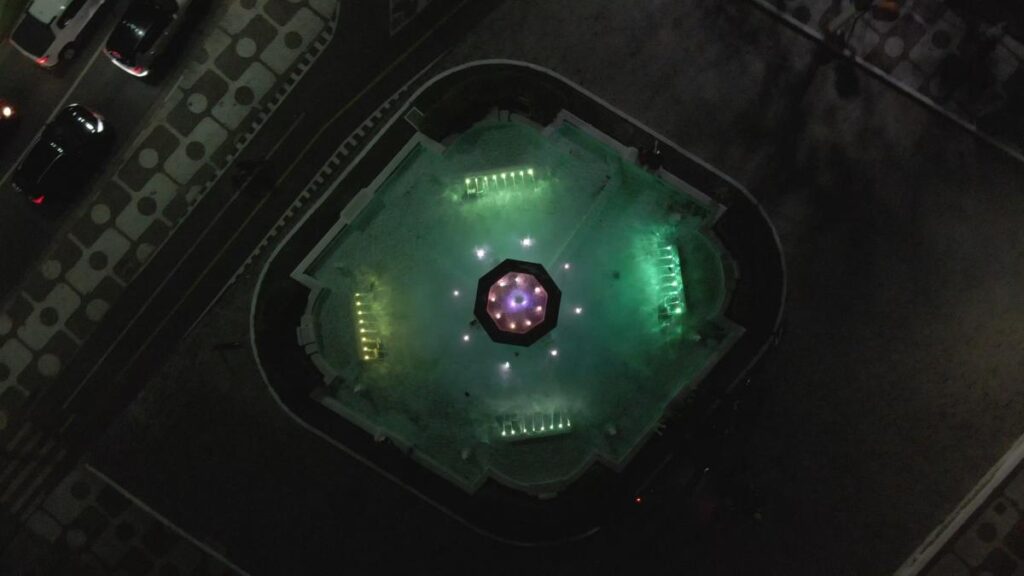 A fonte foi esvaziada para receber pintura especial nas partes interna e externa, com tinta PU, especial para piscinas e fontes, por ser mais resistente à água. O espaço também recebeu nova iluminação. “Foram trocados os inversores que comandam as luzes e os jatos d’água”, destaca Rodrigo Paixão.