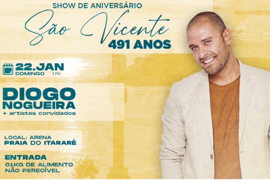 O aniversário é de São Vicente, mas quem ganha o presente são os vicentinos. Para comemorar os 491 anos da Primeira Cidade do Brasil, a Prefeitura promove o show do sambista Diogo Nogueira neste domingo (22).