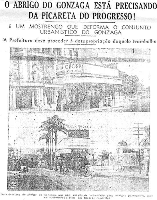 Ademais, o abrigo do Gonzaga, tal como se apresenta, constitui iminente perigo para o público e já registramos mais de um acidente devido à sua esquisita localização.